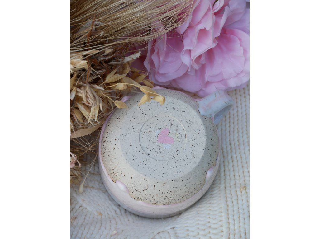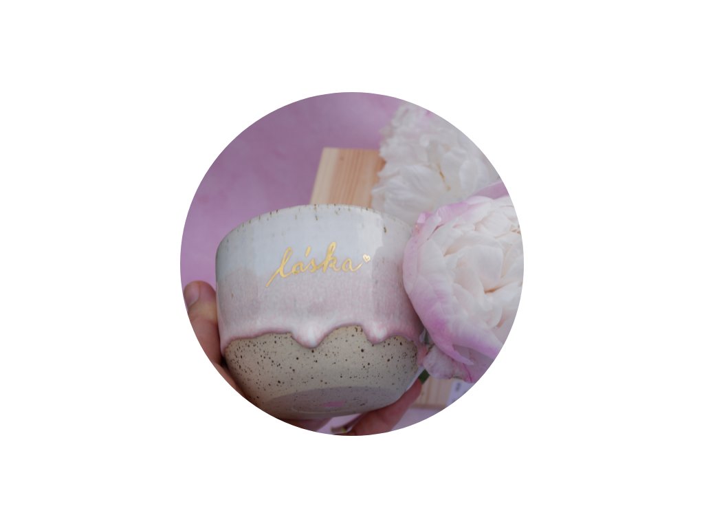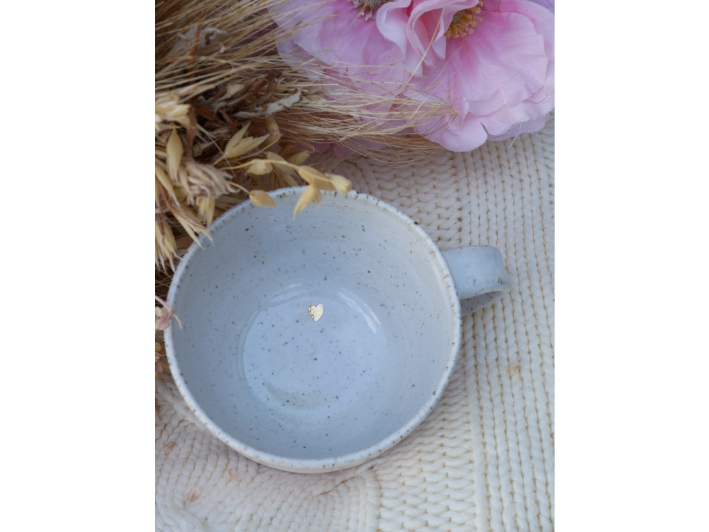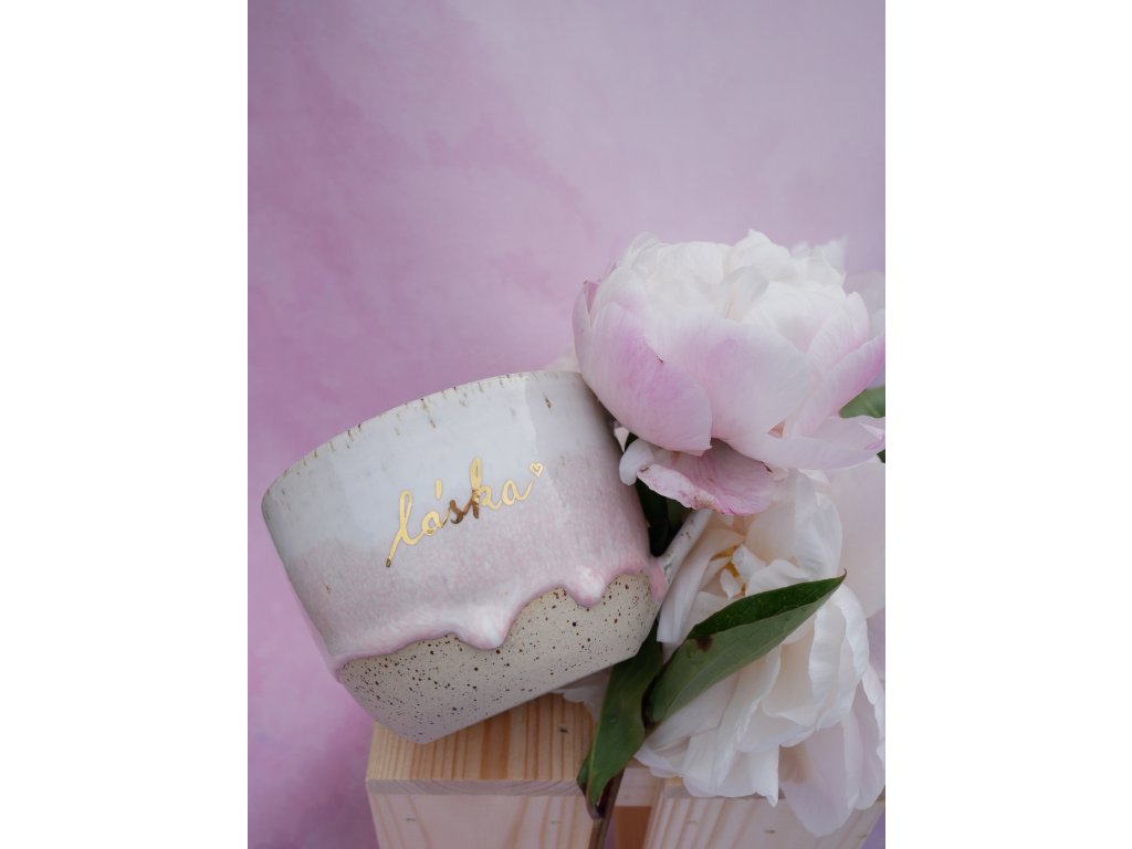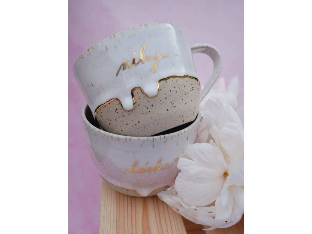 Ručně zlacený nápisem láska❤︎ se stékanou smetanou. Broušený do hladka, aby se pohodlně držel v ruce. Po dopití kávy na Vás vykoukne ručně zlacené srdíčko ❤︎