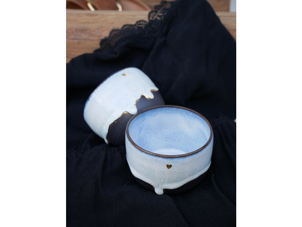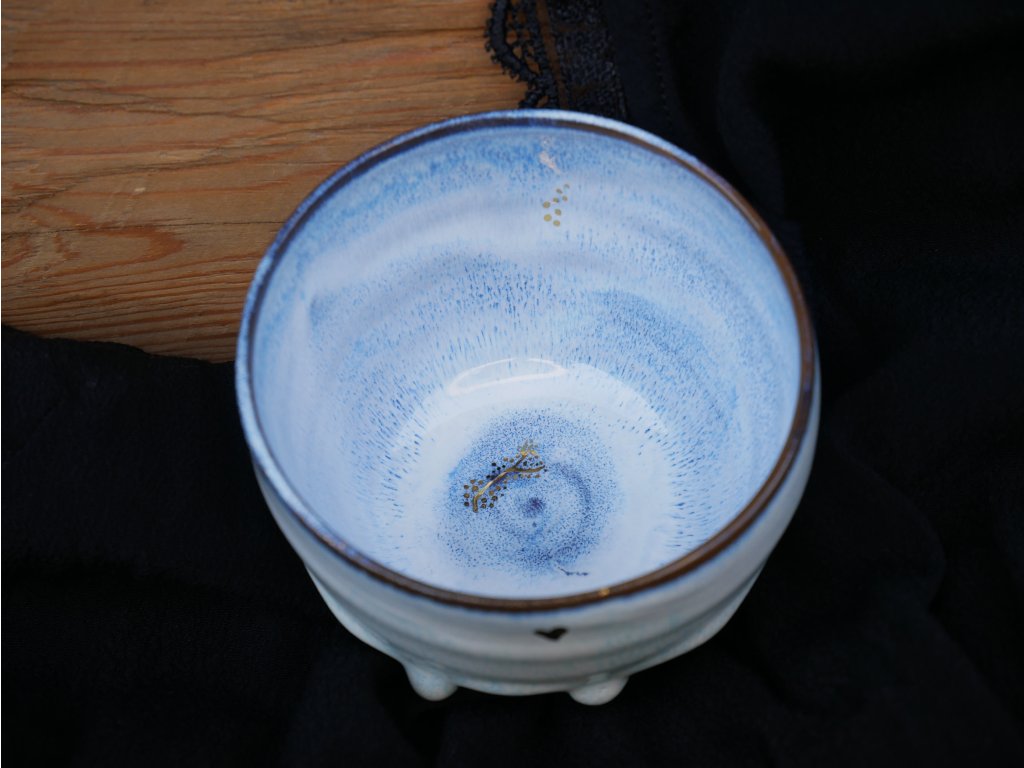 Za velké radosti a veselí vytočený kalíšek z černého porcelánu, politý nebeskou glazurou se zlatými doplňky ❤︎