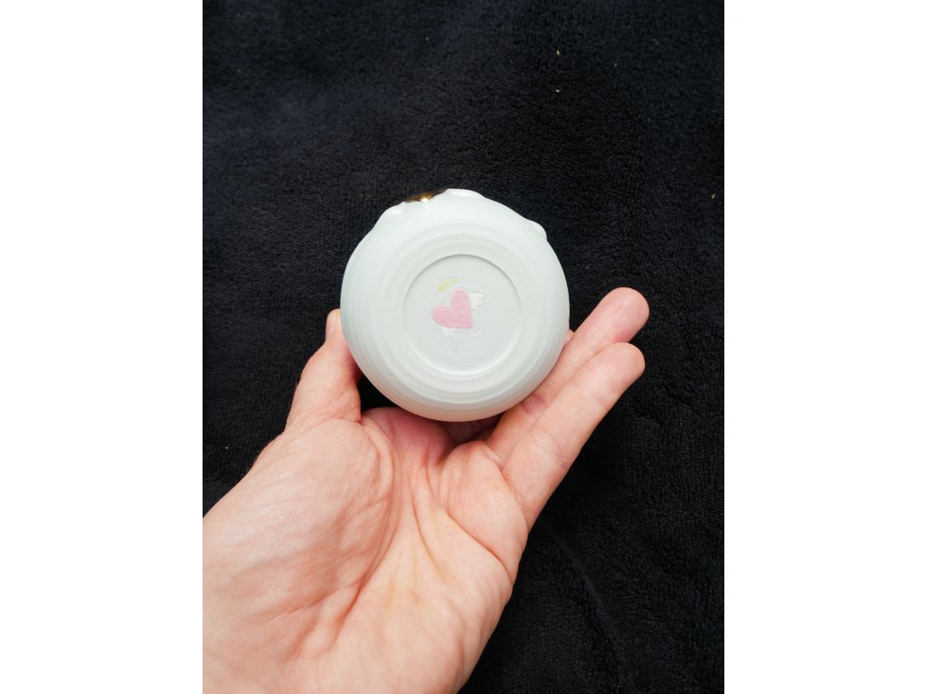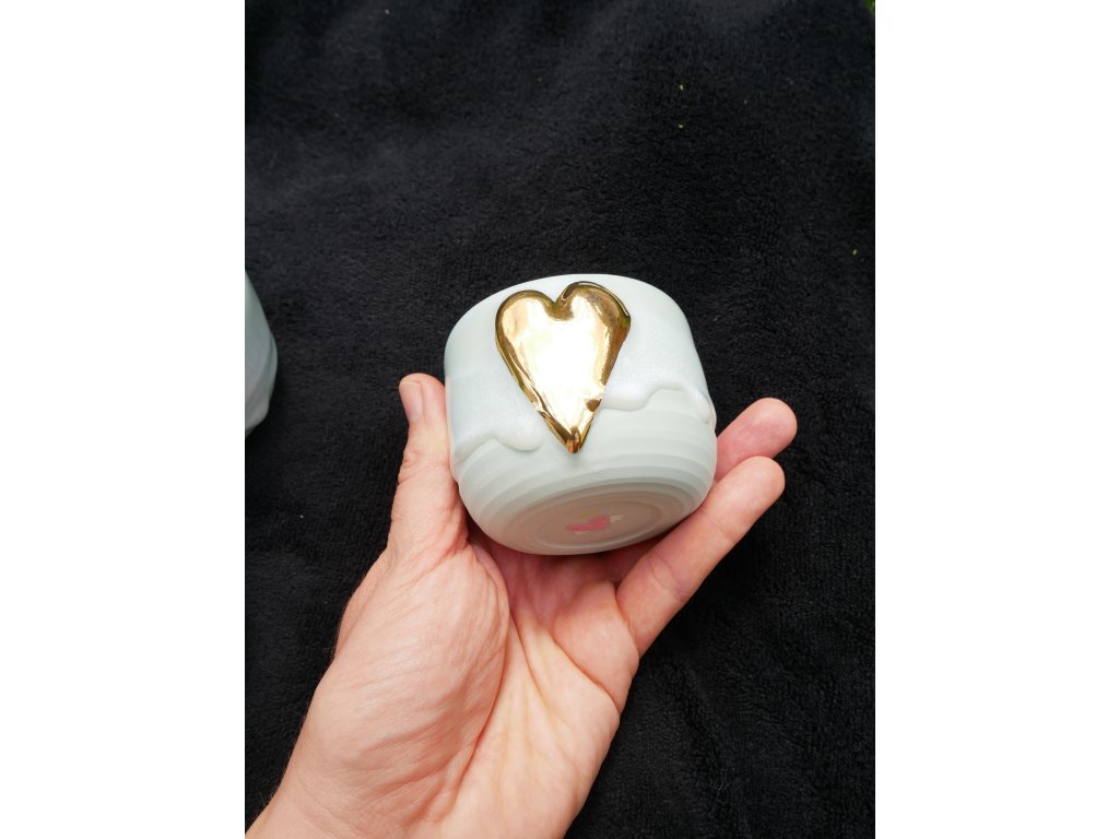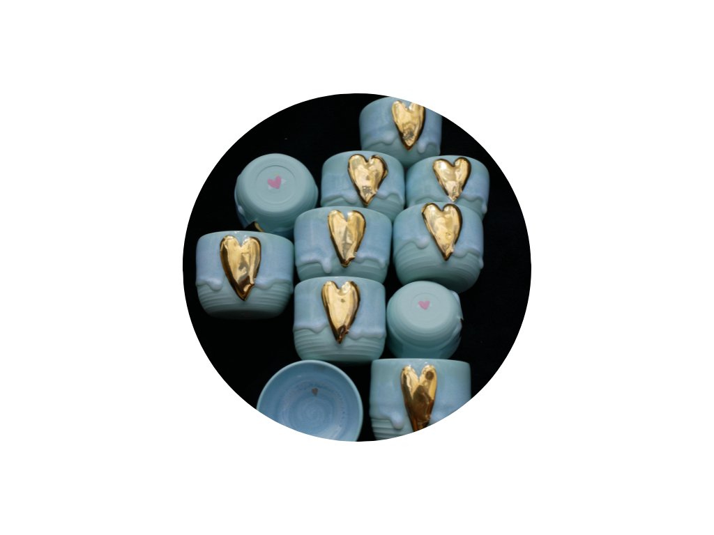 Ručně modelované Velké srdce, nazlacené pravým zlatem ❤︎ Broušená do hladka, aby se pohodlně držela v ruce. Po dopití nápoje na Vás vykoukne ručně zlacené srdíčko ❤︎ na nebeském vodopádu.